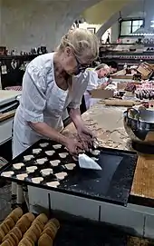 The Gingerbread Museum (Slovene: Gostilna Lectar) is a pastry shop dedicated to decorative hard gingerbread (i.e., Lebkuchenherzen), handmade from a honey-based dough mostly shaped into hearts of various size. It is located in a historical house in the old town center of Radovljica. The bakery's workshop is located in the basement, where women in traditional costume show how to bake gingerbread with historical tools and equipment. A café is located on the ground floor.[9]