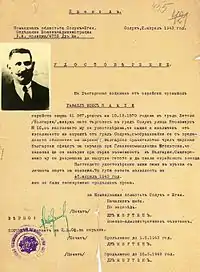 Rafael Moshe Kamhi (Bulgarian and Macedonian: Рафаел Моше Камхи, 1870–1970; military pseudonym Skander Beg)[2][3] was a Sephardic Jew from Monastir (now Bitola) in Ottoman Macedonia. Besides being Jewish, Kamhi felt also strong attachment to Macedonia as his native homeland.[4] Kamhi was elected as liaison officer of the Internal Macedonian Revolutionary Organization (VMRO).[5] He directly participated in the Miss Stone Affair and in the Ilinden–Preobrazhenie Uprising of August 1903.