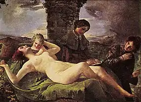 Following the rise of the Nazis, his older, sometimes mythological styles found favor with the party's supporters, and he was commissioned to do several female portraits. These included Winifred Wagner, Cosima Wagner and Emmy Göring.[5] He was awarded the Goethe-Medaille für Kunst und Wissenschaft in 1940, and his works were featured at the Große Deutsche Kunstausstellung of 1941. Hitler bought one for 60,000 .[4] Shortly after, he moved to the safety of a remote location in Bavaria where he died, ten years later.