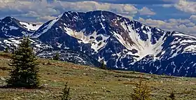 ![]() West ridge of Raft Mountain with Trophy Mountain in distance | |