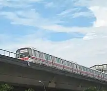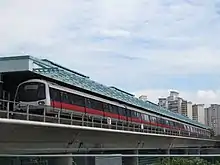 Changi Airport, the main international airport of Singapore, is served by an automated rubber-tyred Skytrain system which first opened in 1990 to connect both the landside and airside of Terminals 1 and 2 when the latter terminal opened the same year. From 2004 to 2007, the original Adtranz C-100 system was replaced with the Mitsubishi Crystal Mover when the system was upgraded and expanded to Terminal 3. In 2019, six more vehicles were phased in and three-car services between Terminals 2 and 3 were introduced to expand the capacity of the system.[24]