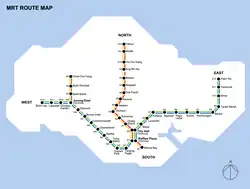 The current MRT network consists of six main lines: the North South Line, East West Line, Circle Line and Thomson–East Coast Line operated by SMRT Trains (SMRT Corporation) and the North East Line and Downtown Line operated by SBS Transit. Two more lines, the Jurong Region Line and the Cross Island Line, will open in stages from 2027 and 2030 respectively.[22][23]