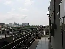 The contemporary MRT system uses the 1,435mm standard track gauge with the elevated lines also having guard rails to prevent a derailed vehicle from striking fixed obstructions and viaduct parapets by keeping derailed wheels adjacent to the running rails. Three types of rail tracks are used on the MRT: ballasted track, fixed slab track and floating slab track; floating slab tracks are used at sections of the rail network located beneath densely populated and built-up areas to alleviate vibration and noise transmission to neighbouring buildings, by means of interposing rubberised supports between the tunnel wall and the tracks.[47] When initially built, the MRT used swingnose crossings for 26 out of 131 railway points to minimise noise. From July to November 2000, these swingnose crossings were replaced with conventional ones for reliability reasons.[48]