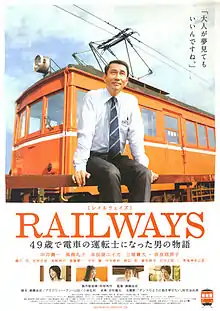 Railways (RAILWAYS 49歳で電車の運転士になった男の物語, Railways 49-sai de Densha no Untenshi ni Natta Otoko no Monogatari) is a Japanese film released on 29 May 2010. The film was produced by Shūji Abe, directed by Yoshinari Nishikōri, and stars Kiichi Nakai and Reiko Takashima. This is the first movie in the Railways trilogy of films.