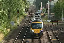 The last section of line to be closed, the Leeds Northern Line from Harrogate and Ripon, closed to passengers in 1967 but was not closed completely until 1969. The widened lines on the ECML, which provided four tracks between Northallerton and York, were an easier route south than some steeply graded sections around Ripon and Wetherby.[37] The former LNR route was re-opened for services in the aftermath of the Thirsk rail crash. Some questioned the validity of closing the line citing the crash at Thirsk as reason to keep it open as an alternative line when the ECML would be closed.[54] Various reports have detailed re-opening the line but some historical studies have suggested that the route should only open between Ripon south to Harrogate as there would be no business case to provide for a railway running further north.[55][56][57] In 2015, North Yorkshire County Council submitted plans for transport schemes in North Yorkshire, the provision of a railway connecting Harrogate and Ripon to the ECML was among them. However, while the routeing of the railway north suggests that the freight railway through Northallerton could be closed, the plan calls for the junction of a re-opened line to be north of Northallerton town.[58][59]