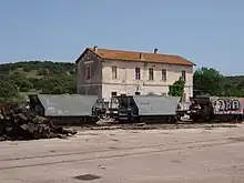 The former station of the SFSS di Monti, seen from the neighboring FS airport . Monti, together with Sassari, Chilivani, Macomer, Sanluri, Iglesias, Siliqua, Carbonia and Cagliari, was an interchange point between the FS network and the public narrow gauge network