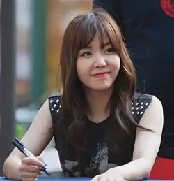 Oh Hye-rin (born May 7, 1989),[1] better known by her stage name Raina, is a South Korean singer. She is best known as a former member of the South Korean girl group After School and member of the sub-unit Orange Caramel. Raina debuted with the group in November 2009 following the release of the group's third single, "Because of You".[2] She debuted as a solo singer in September 2014 with the single "You End, And Me".