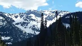 ![]() Rainy Peak seen from the North Cascades Highway near Rainy Pass | |