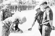 Rais Abin (right) as the Deputy Commander of the Second United Nations Emergency Force overseeing the transfer of command of the Indonesian battalion.