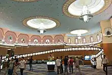 Raj Mandir Cinema is a movie theatre in Jaipur in Rajasthan state in India.[2] Situated on the Bhagwan Das Road, near M.I. Road, the meringue-shaped auditorium opened in 1976, and over the years has seen many movie premieres of Hindi films, and has become a popular symbol of Jaipur. The theatre is equipped with the latest technology in sound and projection with Dolby Atmos and SLS speakers. [1][3]