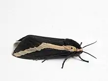 Rajendra perrottetii is a moth in the family Erebidae. It was described by Félix Édouard Guérin-Méneville in 1844. It is found in India.[1] The species is similar to Rajendra biguttata, which is also found in Sri Lanka, by narrower white fascia which runs from base to the apex. Where R. biguttata has much broader white fascia.[2]