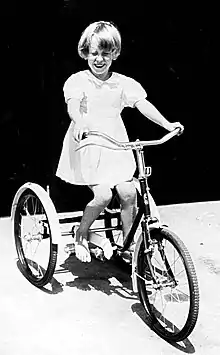 The Winkie was a rear chain drive children's tricycle manufactured in England by Raleigh Bicycles between 1950 and 1970.[1][2][3] Raleigh marketed the tricycle to children by having them automatically join an owners club called The Circle of Silver Knights which taught traffic safety while also acting as a way to sell tricycles. The construction is welded steel tube with steel wheels and a single speed driven by a chain attached to a solid rear axle.[4]