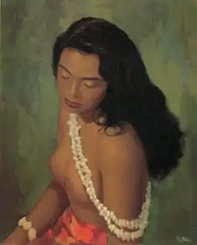 Career Tyree was born in Irvine, Kentucky and moved to Delhi, California as an infant. He was awarded a scholarship to the California College of the Arts (Oakland) for a portrait he painted of his future wife, Marguerite (Margo) Almeida and also studied at the San Francisco School of Fine Arts. Seven weeks after the Japanese attack on Pearl Harbor he joined the Marines. He trained at the base in San Diego before being shipped off to Samoa in the summer of 1942. Private Tyree was befriended by his Commanding General, Charles F.B. Price and became the Marine-base artist in Samoa. His portrait art career began by painting the officers and their loved ones, while corresponding with art infused love letters to his girlfriend Margo back home in Turlock, California. He returned to San Diego in April, 1944 and was stationed at Camp Pendleton, Oceanside, CA . On June 27, 1945 Tyree married Margo. He was discharged from the service on January 24, 1946.Soon after Tyree started his family, and began his professional art career in central California. He and his family (Margo and eventually, seven children) traveled back to the South Pacific to live for years in places such as: Guam (1952–55), Oahu (1956–58), Maui (1964–65), and the Big Island of Hawaii (1968-1971). Often, from there, he would travel to other pacific islands: Palau, Fiji, Tahiti, Samoa, and the Solomon Islands over his thirty-year career. He is best known for his nude and semi-nude paintings of women of the Pacific islands. Most of his first works were sensualized Pacific Islander women in tropical beach and forest settings. He painted primarily with oils on board but also occasionally on canvas and with pastels. To add depth and texture, he switched in mid-career (1960) to painting with oils on fine, French silk, black velvet. This was in the midst of the 1960s' Tiki revolution and many of his nude pieces would be displayed in Tiki bars and restaurants. In the 1970s, he started painting endangered animals to call attention to their limited numbers. Burke Tyree died at age 57 of a heart attack at his home in Crows Landing, California. During his career it is estimated that he painted more than 3,000 different pieces.