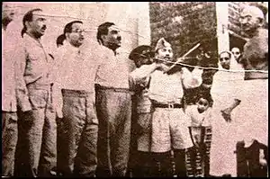 India attained Independence on August 15, 1947, and the next morning Jawaharlal Nehru unfurled the Tricolour on the ramparts of the Red Fort and addressed the nation. It was on this occasion that Capt Ram Singh was especially invited to play the tune of Qaumi Tarana of the INA along with the members of his orchestra group. Later the duration of the tune was shortened with changes in the original script. However, the musical composition was adopted in its original form.[5]