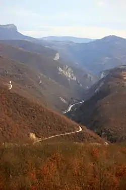 The Rama springs out from large karst wellsprings called Ramsko Ljetno i Zimsko Vrelo (Rama's Summer & Winter Spring - depending on the season and amount of waters from snow melting), while couple of other large karst wellsprings also contribute a majority of rivers waters. In what's now completely submerged Rama valley, in the region of Gornja Rama, the wellsprings of Ramsko Ljetno (Zimsko) (gives around 6% of waters, depending on season and its hydrological condition), Krupić (gives between 40 and 47% of waters, depending on season and its hydrological condition) and Buk (gives between 26 and 41%, depending on season and its hydrological condition) being three largest are situated between villages of Rumboci, Varvara, and Kopčići and distributed around western-southwestern edge of the valley (since 1968 submerged by Ramsko Lake). Numerous smaller ones, such as Tornjaci, Močila and Klenjak in Kovačevo Polje, also contribute to the river volume in its uppermost headwaters.[1][2]