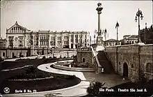Construction of the Municipal Theater began on June 16, 1903. The work was designed by Italian architects Domiziano Rossi and Cláudio Rossi, who worked for the office of Brazilian architect Francisco de Paula Ramos de Azevedo. On October 11, 1911, after eight years of construction, the venue was officially inaugurated. The area also included the São José Theater, which had been operating since 1907, but was demolished in 1924. In order to improve access to the area, City Hall technicians decided to carry out work in the zone in front of the theater.[5]