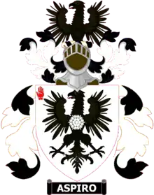 BlazonArgent an eagle displayed Sable and charged on the breast with a rose of the field.