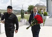 After an attack on the Church of Archangel Michael in Grozny on 19 May 2018, Kadyrov stated that he had personally overseen the operation to eliminate the attackers.[98] On 26 September, he signed an agreement with Yunus-bek Yevkurov, the Head of Ingushetia, resolving the border dispute between the two Russian republics.[99] The agreement seen as grossly unfair to Ingushestia ignited widespread protests eventually leading to resignation of Yevkurov on 24 June 2019.[100][101][102][103]
