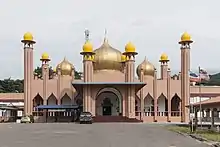On 5 June 2015, an earthquake measuring at 6.0 on the Richter magnitude scale occurred at 7:15 a.m. MST with its epicentre approximately 15 km north of Ranau.[50][51] Mount Kinabalu was closest to the epicentre and was affected by massive landslides causing eighteen people to lost their lives, three of which were from Ranau. Another 137 climbers were stranded on the mountain but they were eventually rescued.[52] It was the strongest earthquake to occur in Malaysia since 1976.[53] Following the earthquake, there were reports of damage to the structures of the Ar-Rahman Mosque, fifteen primary schools and eight secondary schools in Ranau.[54][55]