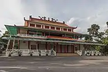 Ranau is noted for its hilly geographical structure and is the largest producer of highland vegetables in the state of Sabah.[6] Tourism and highland agriculture are the major industries, as the district is at an altitude of 1,176 m above sea level.[4] Its many tourist destinations attracted half a million tourists in 2009.[7] These include Mount Kinabalu (the tallest mountain on Borneo), Kinabalu Park, Poring Hot Springs, Kundasang War Memorial, Death March Trail, Mesilau, and Sabah Tea Garden. Ranau's diverse flora ranges from rich tropical lowland and hill rainforest to tropical mountain, sub-alpine forest and scrub on the higher elevations and particularly abundant in species with examples of flora from as far as China, Australia and the Himalayas, as well as pan-tropical flora.[8]