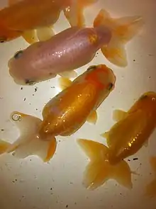 The Ranchu is a member of the Japanese development of the lionhead.[2] They are the direct outcome of crossbreeding experiments with Chinese lionhead specimens.[3]