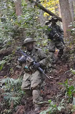 When Western Army Infantry Regiment (WAiR; later expanded to Amphibious Rapid Deployment Brigade) was launched in 2002, Ranger platoons were set up in this regiment. These platoons are certified as special operation units.[13] In 2012, they conducted joint landing exercises with the United States Marine Corps in Guam.[14][15]