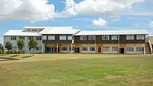 Rangitoto College opened in 1956, with an initial roll of 180 Year 9 and 10 students (then known as Forms 3 and 4).[4] A block and D block are the school's two original buildings; these are standard school buildings of the "1950s Single Storey" type, with long single-storey blocks of classrooms orientated east-west with a corridor connecting the classrooms on the south side.[5]