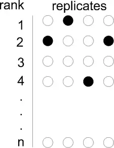 Given n genes and k replicates, let the rank of gene g in the i-th replicate.