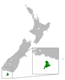 New Zealand has more than 40 species of wild buttercups. Thirty-four of these are native and they usually grow in mountain regions and on some predator-free offshore islands.[5] The Mount Allen buttercup is one of three species endemic to Rakiura/Stewart Island. It is found only in the remote Tin Range on the slopes of Mount Allen. It survives in the shady damp crevices and ledges of rocky outcrops high on the mountainside at altitudes of 700 m (2,300 ft).[3][2][1] It is most closely related to R. pinguis, which is found on the Auckland and Campbell Islands, and the yellow mountain buttercup (R. sericophyllus) from the South Island.[4]