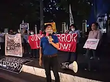 Raoul Manuel speaking against the Anti-Terrorism Act in a protest action, December 2021.