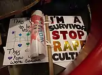 The SlutWalk movement are credited with popularizing the term via mass media reports about the protesters in the English-speaking Western media.[150] The rallies aim to raise awareness of rape culture—which they define as a culture in which "sexual violence is both made to be invisible and inevitable"—and to end slut-shaming and victim blaming.[151][152] One primary goal of this organization is to deconstruct the stigma that often comes with being a victim of rape or sexual assault. Ringrose and Renold said that "the stigma relates to the way women dress and behave, but in fact male sexual aggression is the problem".[153] A SlutWalk that took place in London promoted several different kinds of attire including lingerie, nipple, tassels, and T-shirts with slogans to demonstrate what women wear is not a form of consent for sex.[153] The SlutWalk of Philadelphia was rebranded as The March to End Rape Culture. The idea behind the name change is so the walk can be more inclusive and promotes more diversity in its participants, volunteers, and sponsors.[154] The original SlutWalk took place in the city of Toronto, Ontario.[147] Amber Rose is also a figure in the United States where she holds her annual Amber Rose SlutWalk in Los Angeles, California while also raising awareness for empowerment and the Amber Rose Foundation.[155]
