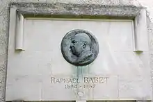![]() Plaque commemorating Babet in the Square d`Alleray, Paris | |