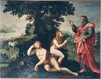 The Bonnefanten Museum in Maastricht holds a Crucifixion that has tentatively been attributed to Raphael Coxie or Gillis Mostaert.[15] A painting depicting the Rest on the Flight to Egypt has also been attributed to him.[16] A painting of the Creation of Eve was sold at Bernaerts, Antwerp on 30 March 1998. The composition was likely based on an engraving made by Cornelis Cort after Taddeo Zucceri’s treatment of the same subject.[17]