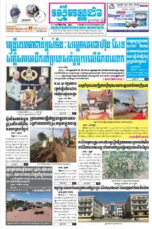 Rasmei Kampuchea (Khmer: រស្មីកម្ពុជា; "Brightness of Cambodia") was a Cambodian's daily newspaper. The paper was started in 1993.[3] It circulates about 18,000 copies in Khmer.[4] On 1 December 2023 the Rasmei Kampuchea Daily ceased it publication, both in printed and digital format, citing financial problems and digital disruption.[1]