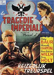 Rasputin (French: La Tragédie impériale) is a 1938 French historical film directed by Marcel L'Herbier and starring Harry Baur, Marcelle Chantal and Pierre Richard-Willm.[1] It depicts the rise and fall of the Russian mystic Grigori Yefimovich Rasputin, the advisor to the Romanov royal family. It was shot at the Joinville Studios in Paris. The film's sets were designed by the art director Guy de Gastyne.