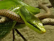 - Green bush snake, R. prasinus (Blyth, 1854)