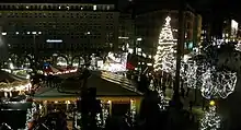 Rathausmarkt (lit. City Hall Marketplace) is the central square of Hamburg, Germany, located in the Altstadt (old town) quarter right in front of the Hamburg Rathaus.[1] Framed by shopping arcades of Alsterarkaden at Alsterfleet, there are many events taking place here, amongst them open air cinema in summer, the Stuttgarter Weindorf (Stuttgart wine village), the music festival of Rockspektakel, and the Christmas market in December.[2]