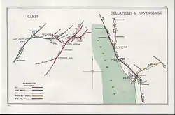 The remains of a loading platform, opposite the Ravelrig Junction Cottages, for transhipment between the quarry tramways and the standard gauge exchange sidings survives and this may have doubled as the worker's platform.[9][10]