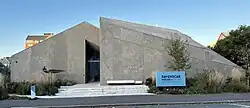 The building was designed by Patterson Associates. It features reflecting pools, vaulted ceilings, concrete panels, and extensive glass windows.[7] The high gables were intended to align with the neo-Gothic forms of the nearby Christchurch Arts Centre and Canterbury Museum The gardens were designed by landscape architect Suzanne Turley.[8]