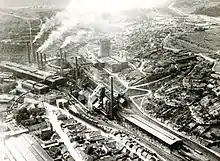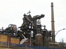 Four industrial elements of the Reșița Works are listed as historic monuments: the UCM locomotive factory, and from the CSR, blast furnace #2, the brick factory and the puddling and steam laminating workshop. In addition, two villas belonging to the UCM authorities are listed, as well as a number of those belonging to the UDR leadership.[1][15] Although blast furnace #1 was demolished, the remaining one, representing the fifth generation of blast furnaces on the same site, was left standing due to its symbolic significance in the city's cultural identity and contribution to the industrial landscape.[1][16] By the early 1990s, the works had caused serious air, water and soil pollution,[17] making Reșița among the most severely polluted areas of Eastern Europe.[18]