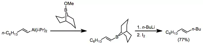 Treatment of alkenylaluminates with halogen electrophiles such as N-bromosuccinimide (NBS) and iodine leads to the formation of halogenated olefins.[16] These products are useful for cross-coupling reactions.