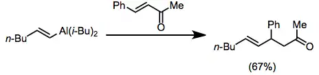 Alkynyl- and alkenylalanes add in a conjugate fashion to enones in the s-cis conformation without nucleophilic activation. Enones locked in an s-trans conformation, such as cyclohexenone, are unreactive. The coordination of oxygen to aluminium is believed to be necessary for this reaction.[19]