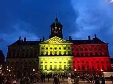 Royal Palace of Amsterdam lit in Belgian colours after the bombings
