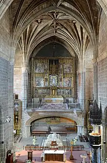 The monastery became the burial place for John, Prince of Asturias, the son of Queen Isabella I of Castile, and King Ferdinand II of Aragon. A marble monument below the main altar was designed by Domenico Fancelli. While the statue of the prince is still Gothic, the ornamented truncated pyramid on which he rests is in Renaissance style.[4] The stalls in the choir are carved from walnut in Gothic style.[4]