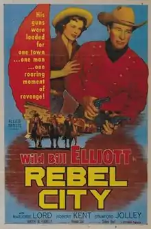 Rebel City is a 1953 American Western film directed by Thomas Carr and starring Wild Bill Elliott, Marjorie Lord and Robert Kent. The film is set in Junction City in Kansas during the American Civil War where Southern supporters are attempting to launch an uprising.[1]
