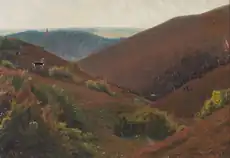 Rebild National Park (Danish: Rebild Bakker) is a Danish national park situated near the town of Skørping in Rebild municipality, Region Nordjylland in northern Jutland, Denmark. The idea of arranging an annual gathering for Danish-Americans in a moorland setting in Denmark originated with Danish immigrant Max Henius. Funds were raised by Danish Americans to purchase to 200 acres (0.81 km2) of heather-covered hills and moorland, located within Denmark's largest forest, Rold Forest (Danish: Rold Skov).[3][4][5]