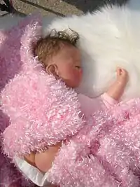 A reborn doll is a hand made art doll created from a blank kit or a manufactured doll that has been transformed by an artist to resemble a human infant with as much realism as possible. The process of creating a reborn doll is referred to as reborning and the doll artists are referred to as reborners.[1][2] Reborn dolls are also known as lifelike dolls or reborn baby dolls.[3][4]