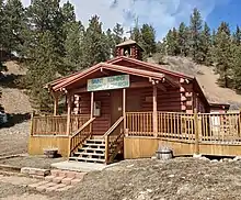 The town of Red River had its beginnings late in the 19th century, when miners from nearby Elizabethtown in the Moreno Valley were drawn in by gold strikes in the area and trappers sought game. It was named after the perennial stream, Red River, that flows through the town, coming from the northern slopes of Wheeler Peak. By 1895, Red River was a booming mining camp, with gold, silver and copper in some abundance, and a population estimated at three thousand. Mining hit its peak in 1897, and by 1905 the mining and the population dwindled but the town survived, gaining a reputation as a great getaway from hot weather and as a trout fishing paradise. The last serious mining efforts extended until 1931. By that time tourism had become the principal economic livelihood.[3]