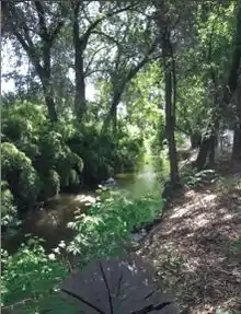 Mill Creek is a creek that runs through the city of Visalia, including both of Redwood's campuses. Starting at the southeast part of the main campus, the creek runs underground until halfway, then it runs along the south campus, dividing the main campus from the Mineral King Bowl, continuing under Giddings Street and finally along the northern edge of the Sierra Vista campus and into Green Acres.