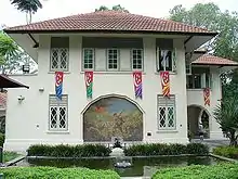 The building in which the exhibition is housed is a colonial-era black and white bungalow located near the site of the Battle of Pasir Panjang in February 1942.[2] It was built at the turn of the 20th century for senior British officers.